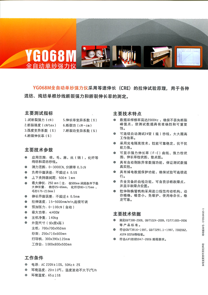 產(chǎn)品名稱: YG068M 全自動(dòng)單紗強(qiáng)力儀